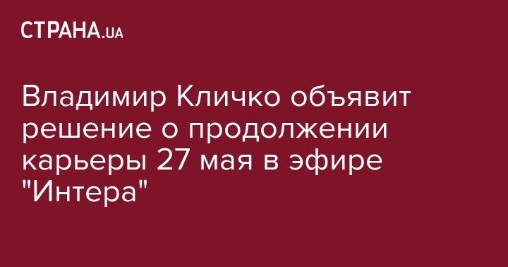 41-летний Кличко впервые после проигранного поединка с британцем Энтони Джошуа расскажет о своем будущем в эфире программы "Большой бокс" 27 мая на телеканале "Интер". От этом сообщает ТАСС.