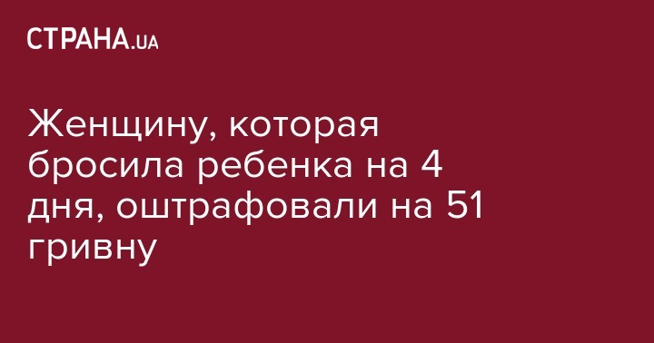 На девятнадцатилетнюю жительницу города Вараша Ровенской области наложен штраф за оставление годовалого сына без присмотра на 4 дня.