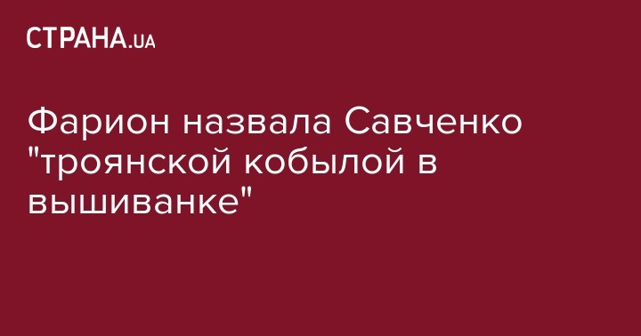 Экс-депутат Верховной Рады, член партии "Свобода" Ирина Фарион назвала депутата Надежду Савченко (внефракционная) "троянской кобылой".