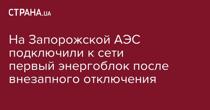 На Запорожской АЭС подключили к сети первый энергоблок после внезапного отключения
