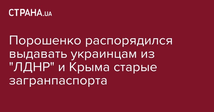 Президент Петр Порошенко поручил решить вопрос с обеспечением граждан Украины, находящихся на территории ОРДЛО и в оккупированном Крыму путем выдачи загранпаспортов старого образца.