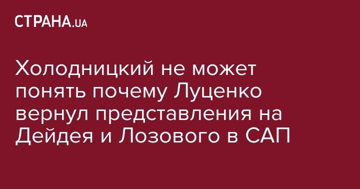 Руководитель Специализированной антикоррупционной прокуратуры (САП) – заместитель генерального прокурора Украины Назар Холодницкий назвал неожиданным и незаконным решение Генеральной прокуратуры Украины о возвращении в САП представлений на снятие неприкосновенности с народных депутатов фракции Радикальной партии Андрея Лозового и фракции "Народный фронт" Евгения Дейдея.