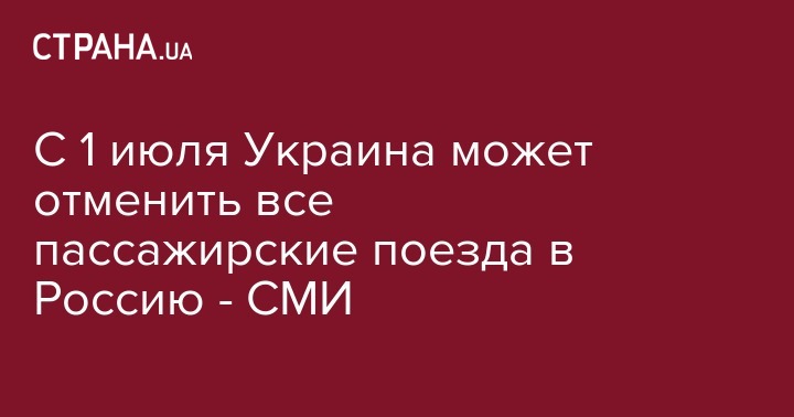 С 1 июля Украина может полностью прекратить железнодорожное пассажирское сообщение с Россией. Об этом пишет "Коммерсант", ссылаясь на свои источники.