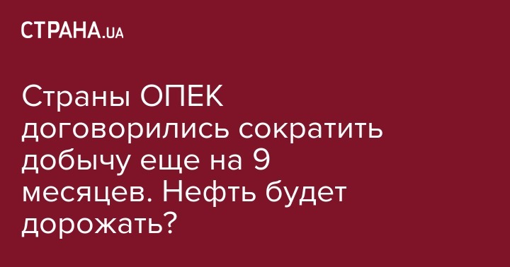 Страны ОПЕК договорились сократить добычу еще на 9 месяцев. Нефть будет дорожать?