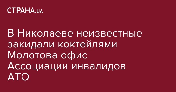 Неизвестные забросали коктейлями Молотова офис "Украинской ассоциации инвалидов АТО". Две из трех бутылок разбились сразу. Еще одна, потухнув в полете, попала в соседний с этой организацией офис.