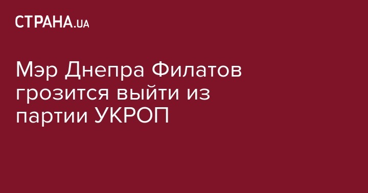 Городской председатель Днепра Борис Филатов угрожает выходом из партии УКРОП, в президиум политсовета которой он входит.