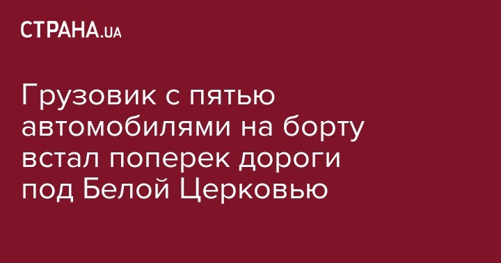 В Киевской области под Белой Церковью  на одесской трассе фура с прицепом для перевозки автомобилей в автосалоны создала крупную пробку.