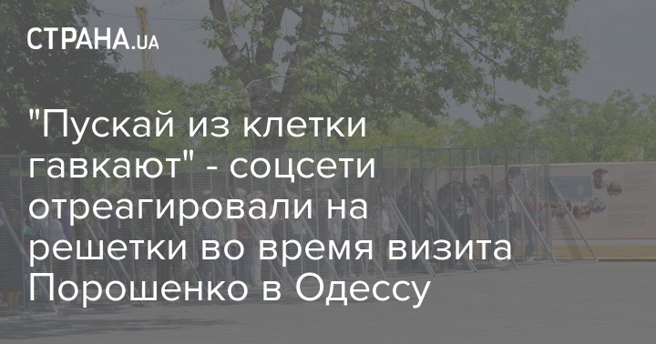 26 мая Петр Порошенко посетил Одессу с рабочим визитом. На подступах к локациям, в которых он должен был побывать, установили металлическое ограждение. После того, как были обнародованы фото и видео одесситов, которые смотрят на президента из-за решеток (в то время как специально собранная массовка из студентов стояла около Порошенко с плакатами "господин президент, спасибо за безвиз"), пользователи соцсетей заявили, что это унизительно и похоже на зоопарк. "Страна" собрала подборку реакций на данную неоднозначную меру безопасности.