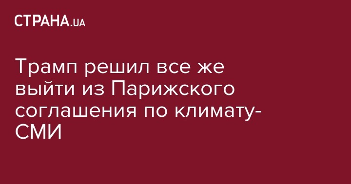 Трамп решил все же выйти из Парижского соглашения по климату- СМИ