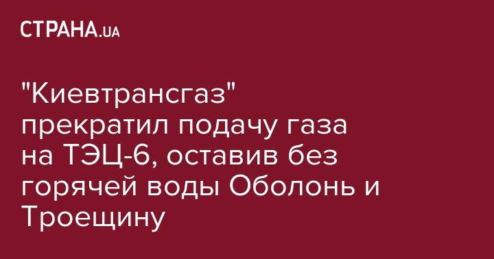 30 мая около 13:00 "Киевтрансгаз" полностью остановил газоснабжения столичной ТЭЦ-6, которая обеспечивает теплоэнергией (горячей водой и зимой отоплением) Оболонь, Троещину, Радужный и Воскресенский массивы. Об этом сообщили в пресс-службе Киевэнерго.