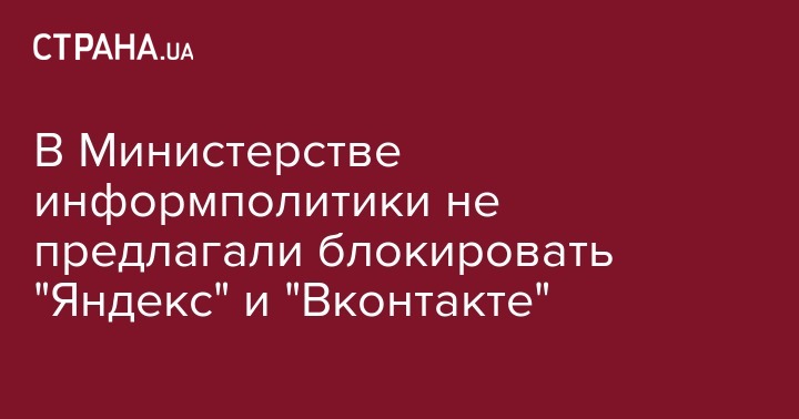 Министерство информационной политики не предлагало блокировать российские социальные сети, а также интернет-сервисов компаний "Яндекс" и "Mail.ru". Об этом говорится в ответе министерства на запрос журналистов Украинских новостей.
