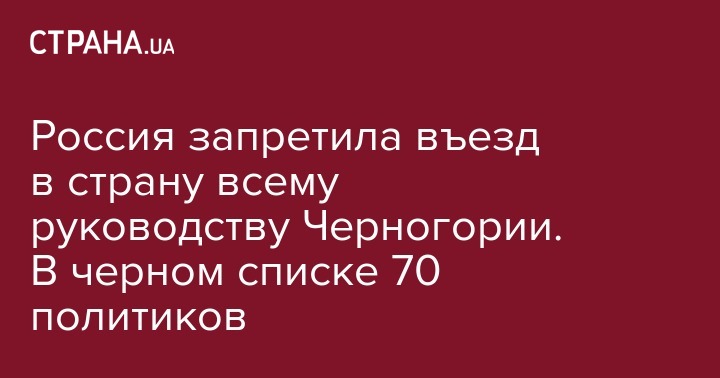 Россия внесла в "черный список" граждан, которым запрещен въезд, премьер-министра Черногории Душко Марковича, председателя парламента Ивана Брайовича, президента Демократической партии социалистов Мило Джукановича, десятки депутатов и чиновников. Об этом сообщает сайт RTCG со ссылкой на информацию ежедневной черногорской газеты Pobjeda.