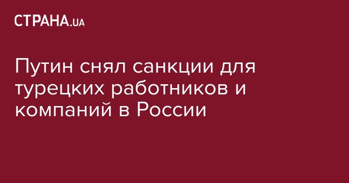 Президент России Владимир Путин снял санкции, которые ограничивали возможность турецких компаний и работников из Турции работать в России. Об этом сообщает пресс-служба Кремля, передают "РИА Новости".