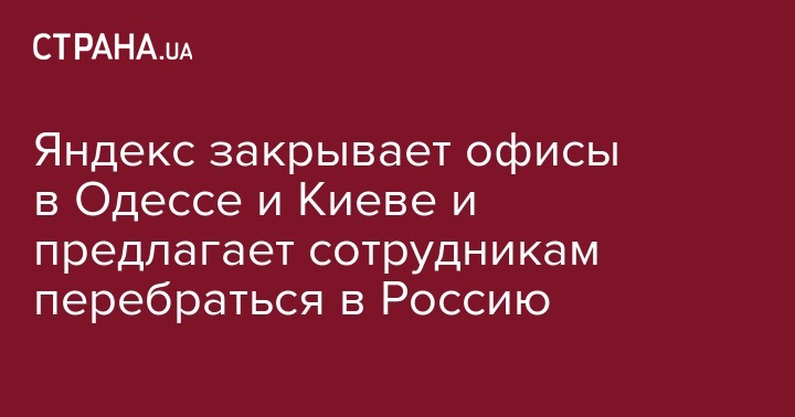 Яндекс закрывает офисы в Одессе и Киеве и предлагает сотрудникам перебраться в Россию