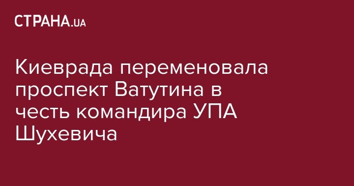 Киеврада переменовала проспект Ватутина в честь командира УПА Шухевича
