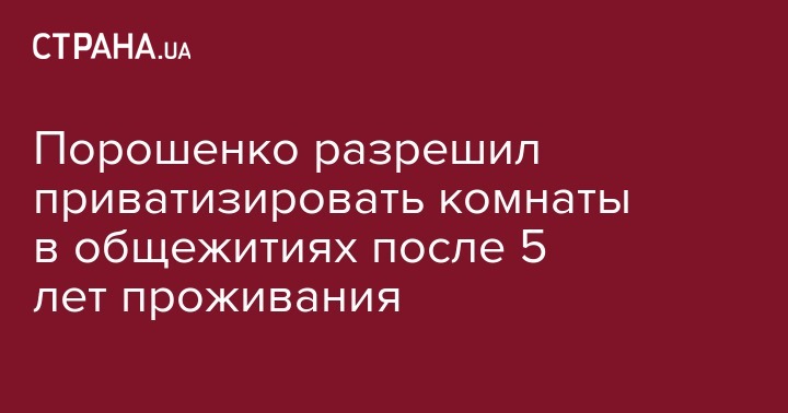 Порошенко разрешил приватизировать комнаты в общежитиях после 5 лет проживания