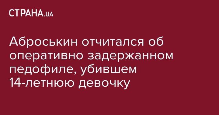 "Во время проведения комплекса оперативно-розыскных и следственных мероприятий по горячим следам задержали подозреваемого в совершении убийства и изнасиловании 14-летней Александры в Андреевке Волновахского района. Мужчина с явным психическим расстройством. Заманил девочку в лесополосу, изнасиловал ее и убил", - написал Аброськин.