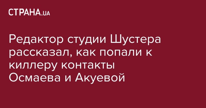 Как сообщала "Страна", Окуева в видео интервью сообщила, что киллер сослался на одного известного в Украине журналиста, сказал, что ему порекомендовали Амину из Шустер.Live. "Поскольку единственный мой знакомый оттуда – это Алексей Стукало, раньше он был гостевым редактором, я написала ему смс и попросила подтвердить, и он подтвердил. Потом были интуитивные моменты и подозрения, я еще раз написала Алексею, чтоб он пояснил, откуда они знакомы", - сказала Окуева.