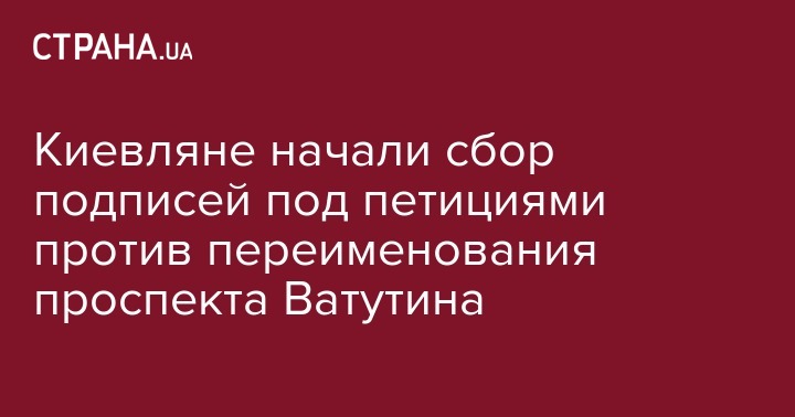 "1 июня 2017 года Киевсовет переименовал проспект Ватутина в проспект Шухевича. Требуем оставить проспекту прежнее название! Благодаря генералу Ватутину в 1943 году Киев был освобожден от немецко-фашистских захватчиков", - сказано в петиции, автором которой является Алена Бережная, на сайте Киевсовета. Ее на данный момент подписал 21 человек.
