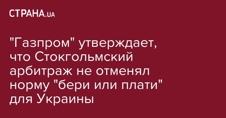 "Газпром" утверждает, что Стокгольмский арбитраж не отменял норму "бери или плати" для Украины