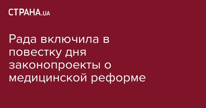 Верховная Рада внесла в повестку дня два законопроекта и медицинской реформе. Об этом сообщает корреспондент "Страны" с места событий.