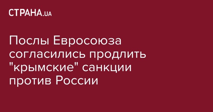 "Послы ЕС решили продолжить инвестиционную запрет ЕС по Крыму на 1 год. Должно быть подтверждено министрами иностранных дел 19 июня", - сообщил Йозвяк.
