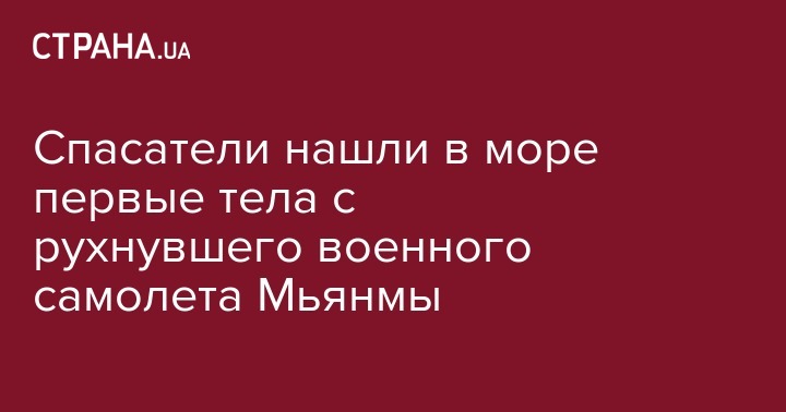 В Андаманском море спасатели обнаружили первые 10 тел пассажиров самолета Вооруженных сил Мьянмы, который вчера потерпел крушение со 122 людьми на борту. Об этом сообщает Reuters со ссылкой на заявление военных.