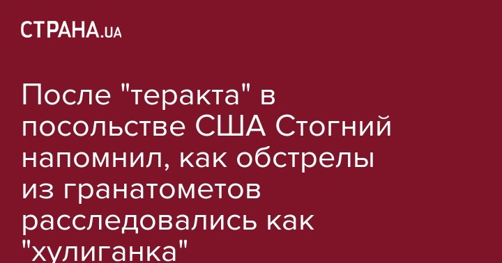 После "теракта" в посольстве США Стогний напомнил, как обстрелы из гранатометов расследовались как "хулиганка"