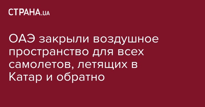 Власти Объединенных Арабских Эмиратов (ОАЭ) объявили о закрытии своего воздушного пространства для всех самолетов, которые летят либо в Катар, либо из него. Об этом сообщает УНН со ссылкой на The National.
