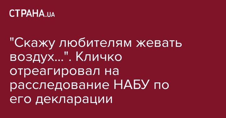 "По "сенсации" о якобы расследовании моих якобы незадекларированных домов. НАБУ проверяет мою декларацию. Да. Это их работа проверять информацию, в том числе и по обращению общественных организаций, депутатов или журналистов. Проверять даже когда дела, фактически нет, и когда заставляют делать это повторно ... А любителям "жевать воздух" скажу: всю необходимую информацию и объяснения я предоставил НАБУ уже давно. Все, что принадлежит мне, я задекларировал - честно и согласно законодательству", - написал Кличко.