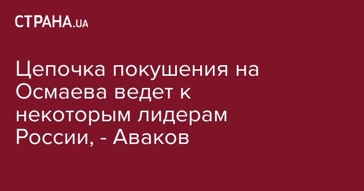 Министр внутренних дел Украины Арсен Аваков заявил, что цепочка покушения на Адама Осмаева ведет к ”некоторым лидерам РФ”. Об этом сообщает 112 Украина.