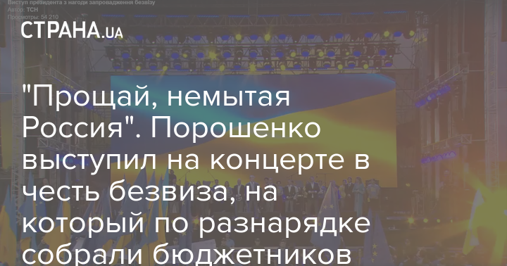Сегодня, 10 июня, президент Украины Петр Порошенко открыл концерт в честь безвиза с ЕС, который проходит на Европейской площади в центре Киева. К собравшемуся на праздник народу он обратился словами Лермонтова.