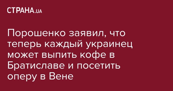 "На сегодняшний день эти паспорта не будут требовать никаких виз, ни бумажной волокиты, никаких сборов, очередей, это значительно увеличивает ценность украинского паспорта. Сегодня каждый украинец может и имеет возможность выпить фантастический кофе в Братиславе или улететь лоукостом в Варшаву, или посетить Венскую оперу", - заявил президент.