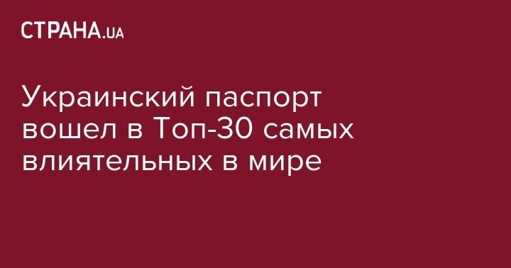 Украинский паспорт занял 30 место в рейтинге самых влиятельных паспортов мира после введения безвизового режима с Евросоюзом. Об этом свидетельствуют данные рейтинга Global Passport Power Rank 2017.