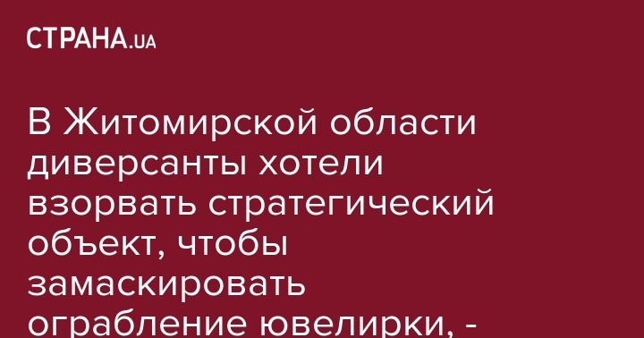 "Сотрудники Службы безопасности Украины совместно с Нацполицией под процессуальным руководством прокуратуры задержали участников организованной группировки, которые планировали взорвать стратегический инфраструктурный объект на Житомирщине", - говорится в сообщении.