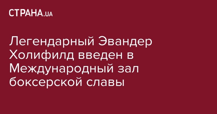 Экс-чемпион мира в супертяжелом весе североамериканский боксер Эвандер Холифилд в возрасте 54 лет был введен в Международный зал боксерской славы. Об этом сообщает официальный сайт Зала.
