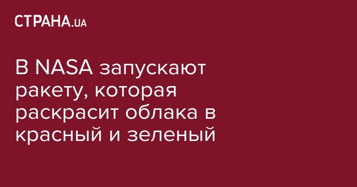 Специалисты NASA собрались запустить ракету, которая раскрасит облака в зеленый и красный цвет. Об этом сообщает пресс-служба космического агентства.