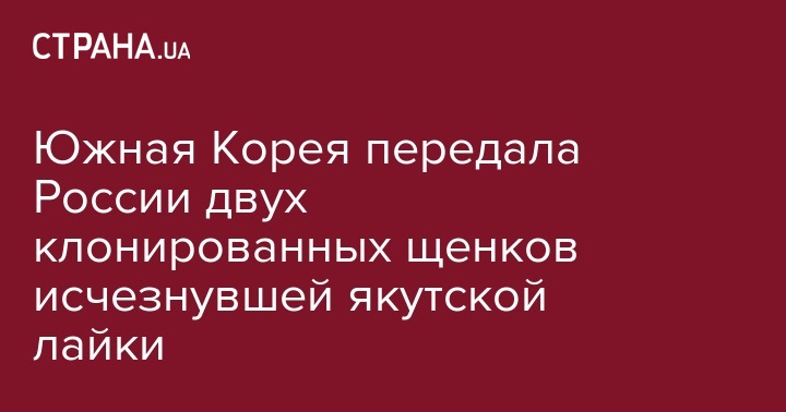 Южнокорейские ученые передали во вторник российскому Северо-Восточному федеральному университету (Саха, Якутия) и якутскому охотничьему клубу "Байанай" двух клонированных щенков якутской лайки. Церемония состоялась в здании Фонда биотехнологических исследований "Суам" (Sooam Biotech Research Foundation) в пригороде Сеула.