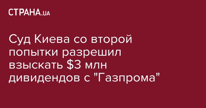 Хозяйственный суд Киева со второй попытки разрешил списать 79,877 млн гривен дивидендов, подлежащих уплате компании "Газпром" (Россия) от компании "Газтранзит" (Киев) в счет погашения штрафа и пени в общем размере 172 млрд гривен.