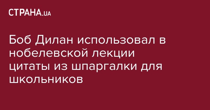 Американский музыкант Боб Дилан использовал литературный портал для школьников и студентов Sparknotes при написании нобелевской лекции. Об этом пишет американский журнал Slate.