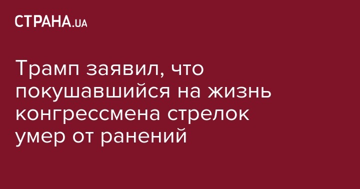 Трамп заявил, что покушавшийся на жизнь конгрессмена стрелок умер от ранений
