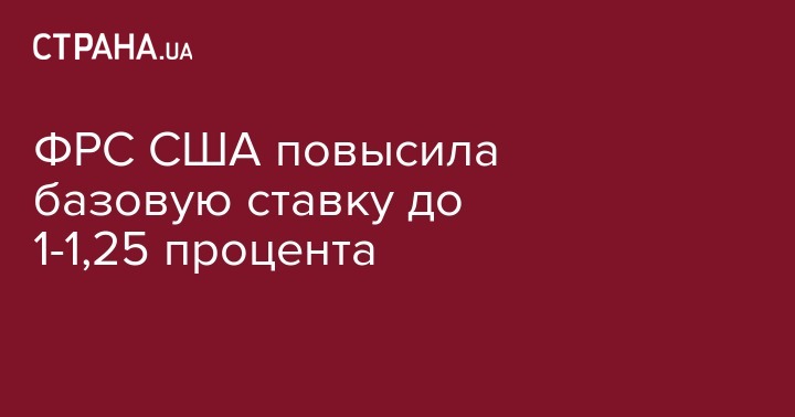 ФРС США повысила базовую ставку до 1-1,25 процента