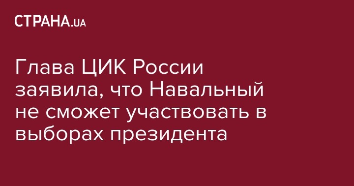 Глава ЦИК России заявила, что Навальный не сможет участвовать в выборах президента