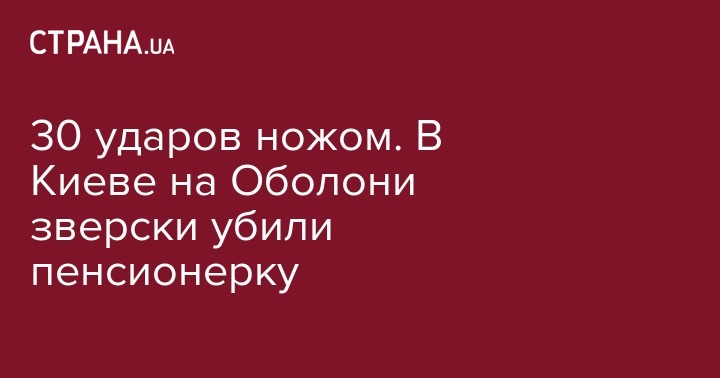 В Оболонском районе Киева вчера вечером, 14 июня, произошло зверское убийство пожилой пенсионерки. Об этом сообщает "Обозреватель" со ссылкой на собственные источники.