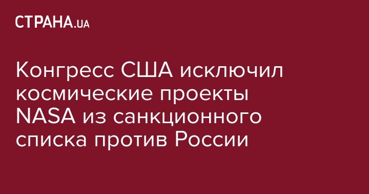 Сегодня Конгресс США принял поправку к законопроекту о расширении санкций против России, которая делает исключение для сотрудничества в космической отрасли для Национального агентства по аэронавтике и исследованию космического пространства (NASA). Об этом сообщает "Укринформ".