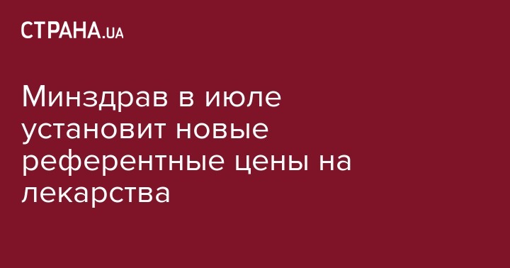 Министерство здравоохранения Украины установит новые референтные цены на лекарства по программе реимбурсации в июле. Об этом сообщает "Интерфакс Украина".