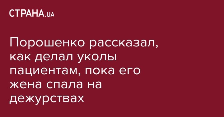 "Надо очень любить профессию врача. Потому, если ты ее не любишь, ты работать не сможешь. Я это знаю совершенно точно, поскольку из моих 18 лет вместе с Мариной, которая тогда была будущим врачом, каждую ночь ходил вместе с ней на ночные дежурства, потому что очень любил и люблю ее ", - сказал Порошенко