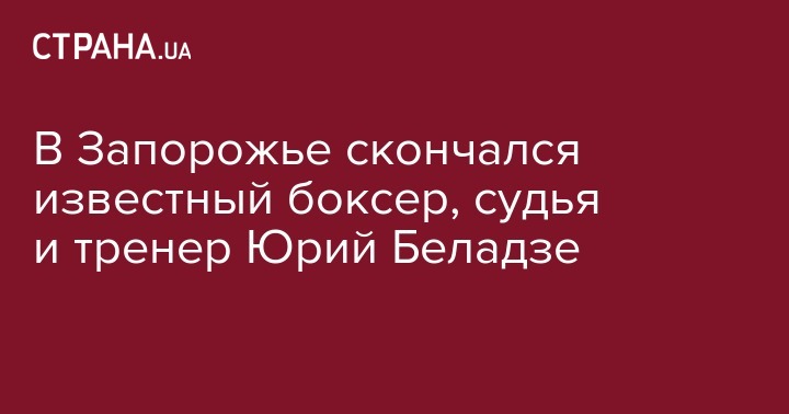 Вчера, 16 июня, в Запорожье скончался почетный гражданин города, президент областной федерации бокса Юрий Беладзе. Об этом сообщил его коллега Владимир Сосуновский на своей странице в Facebook.