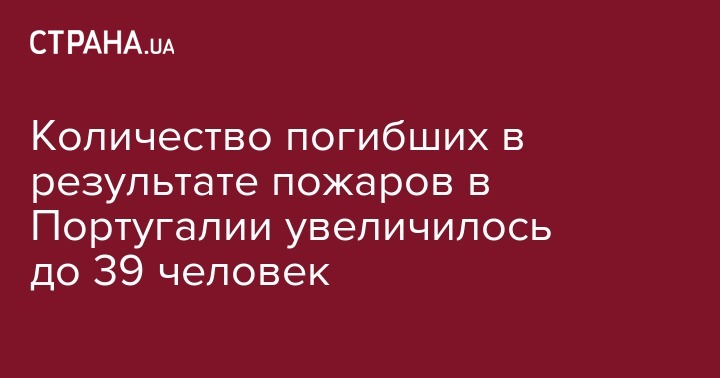 Количество погибших в результате пожаров в Португалии увеличилось до 39 человек