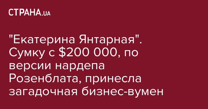 Сумку, в которой находилось 200 тысяч долларов, с которой был задержан охранник народного депутата от Блока Петра Порошенко Борислава Розенблата, на ранее назначенную встречу с парламентарием принесла некая женщина по имени Екатерина. Об этом в комментарии телеканалу NewsOne сказал сам Розенблат, комментируя случившийся с ним коррупционный скандал.